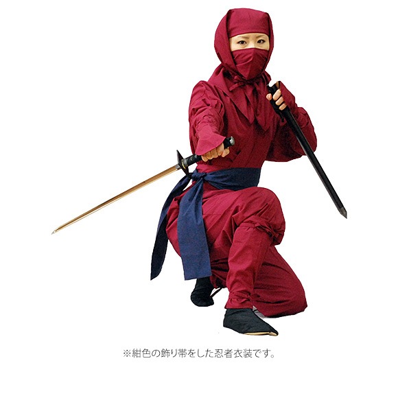 忍者衣装の帯の上に簡単に締めることが出来るので、衣装の色に合わせて、9色の中からオリジナルにコーディネートして下さい。